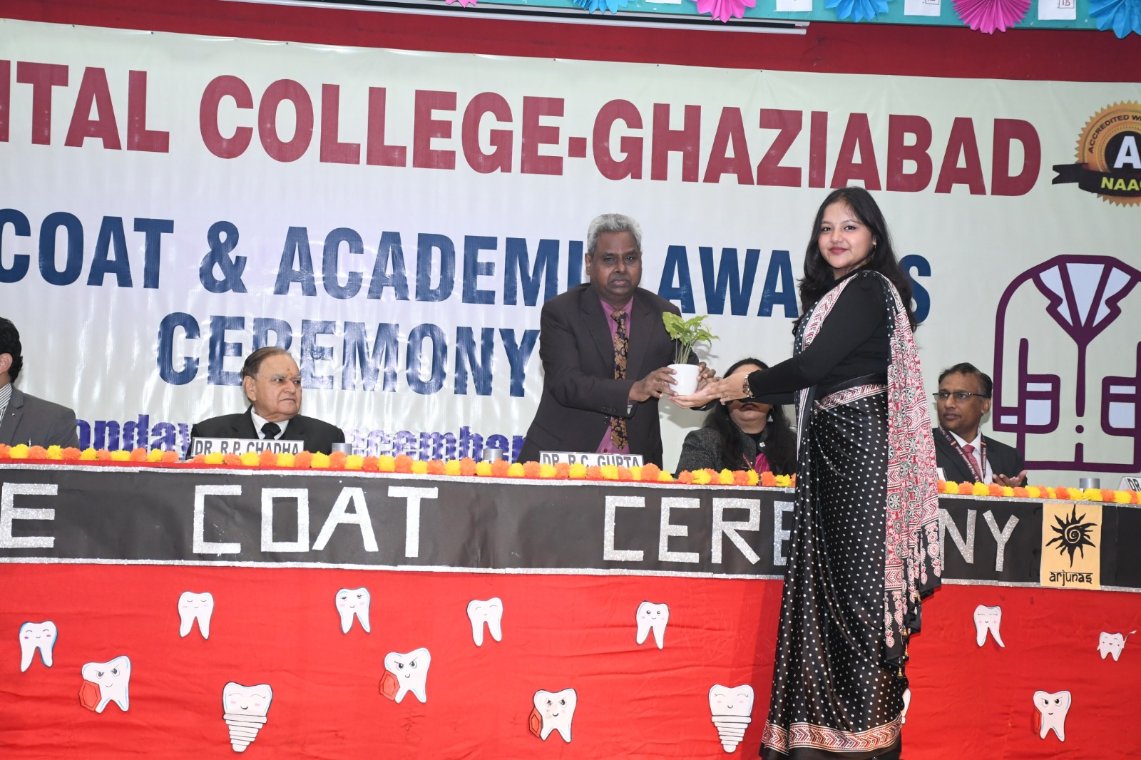 Prof. Sanjeev Kumar administered the dental oath. He urged the students to respect the white coat as it is a symbol of their commitment to excellence in science and patient care.