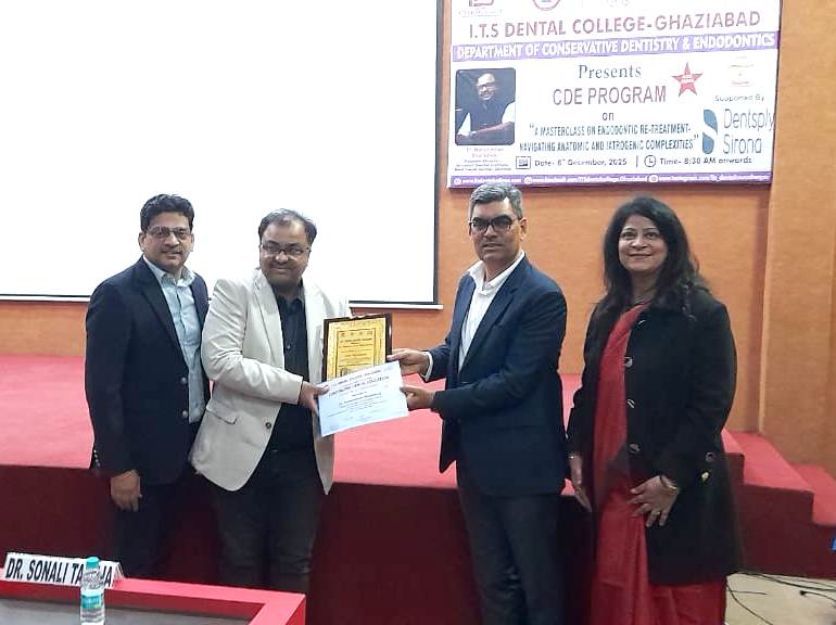 Under the able leadership of our Honorable Vice Chairman ITSThe Education Group Shri Arpit Chadha Department of Conservative Dentistry Endodontics ITS Dental College Ghaziabad organised a CDE Program on A Masterclass on Endodontic ReTreatment Navigating Anatomic and Iatrogenic Complexities on 8th December 2025